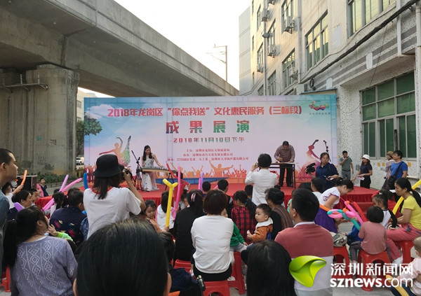 11月10日下午,2018年“你点我送”文化惠民服务(三标段)成果展演在横岗街道228园区开展。