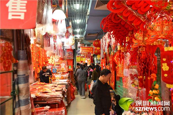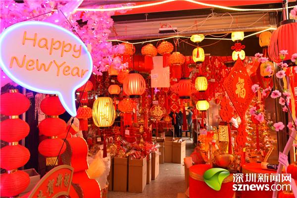 笋岗批发市场内的商铺出售的商品象征着新一年的红红火火。↑