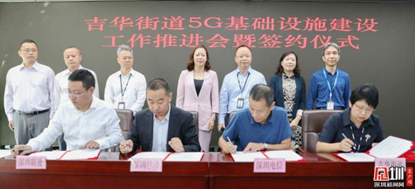 见圳客户端·深圳新闻网11月13日讯(见圳客户端、深圳新闻网记者 李云云 通讯员 赵钊 黄展鸿)为助力龙岗区率先实现5G网络全覆盖,5G基站建设密度全国领先的目标,11月11日,吉华街道举行5G基础设施建设推进会暨签约仪式,并对有关工作进行了部署。吉华街道党工委副书记、办事处主任李红梅,吉华街道党工委副书记、人大工委主任徐远平,龙岗区工业和信息化局副局长温婉靖,区政务服务数据管理局副主任钟凯鸣,吉华街道办事处副主任何世强以及街道各机关、事业单位、社区负责人,三大通讯运营商代表参加活动。