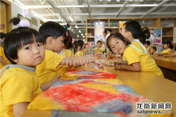 小朋友体验丝绸艺术工艺。
